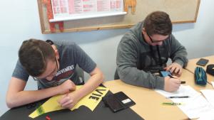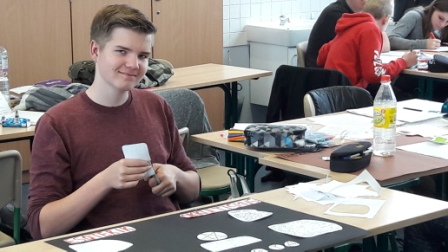 Im Bereich Garten-Landschaftsbau haben wir am ersten Tag eine LKW aus Holz gebaut. Wir haben unsere Teile selbst gezeichnet und selbst ausgeschnitten mit einer Bügelsäge oder einer elektrischen Säge. Am zweiten Tag haben wir einen Weg gepflastert und eine Mauer gebaut. Und als letztes haben wir eine Handyhalterung aus Holz gebaut.