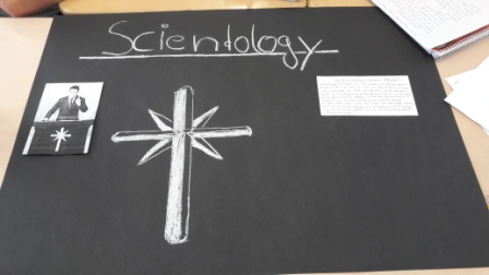 Alle setzten sich intensiv in Gruppenarbeit mit der Thematik auseinander und erarbeiteten ein Plakat und einen Vortrag. Die jeweilige Sekte wurde der gesamten Klasse und dem Ethiklehrer am Ende des Tages vorgestellt. So konnten alle etwas über unterschiedliche Sekten lernen, z.B. über Scientology oder die Satanssekte.
